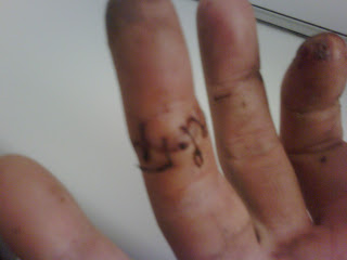 Команда сопровождения отправила меня назад в Великобританию, из-за травмы пальца, а точнее на половину его отсутствия. Я также отрезал кончик другого пальца, который сильно кровоточил. Сырые, влажные условия джунглей плохи для таких ран. В последствии ему пришили назад половину пальца и это выглядело следующим образом: